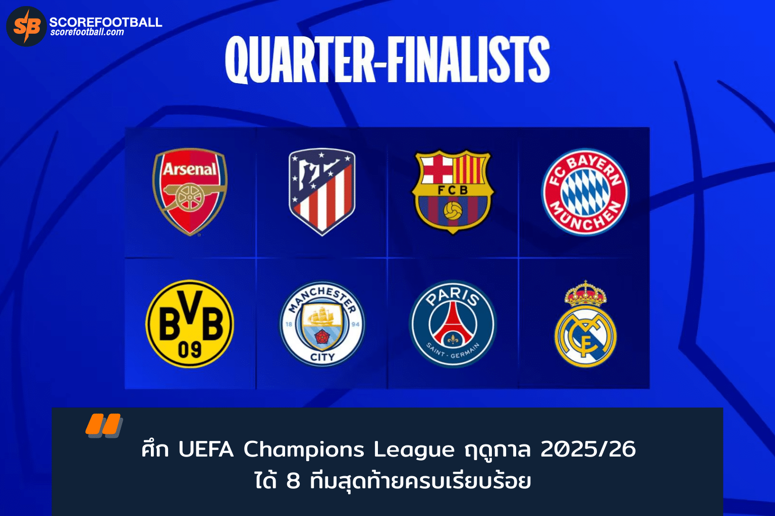 การแข่งขันฟุตบอล UEFA Champions League ฤดูกาล 2025-2026 ย่างเข้าสู่ช่วงเวลาที่ตื่นเต้นที่สุด หลังจากได้ 8 ทีมสุดท้ายเข้ามาชิงชัยอย่างเข้มข้น ทั้งแฟนบอลและนักวิเคราะห์ต่างจับตาดูการปะทะกันของสโมสรแถวหน้าของยุโรป ไม่ว่าจะเป็น Arsenal F.C., Atlético Madrid, FC Barcelona, Bayern Munich, Liverpool F.C., Paris Saint-Germain F.C., Real Madrid C.F. และ Sporting CP ซึ่งทั้งหมดล้วนมีประวัติศาสตร์และชื่อเสียงอย่างยิ่งใหญ่ในเวทีนี้ ความท้าทายของรอบก่อนรองชนะเลิศในฤดูกาลนี้จึงเต็มไปด้วยคู่แข่งที่มีคุณภาพสูงและพร้อมใจกันทำศึกเพื่อคัดเลือกผู้ที่คู่ควรกับตำแหน่งแชมป์ยุโรป