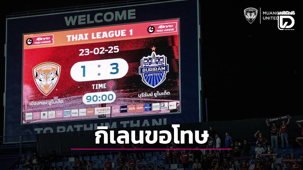 ล่าสุดช่วงบ่ายวันที่ 24 ก.พ. เมืองทอง ยูไนเต็ด แถลงขออภัยเหตุที่เกิดขึ้น ระบุว่า